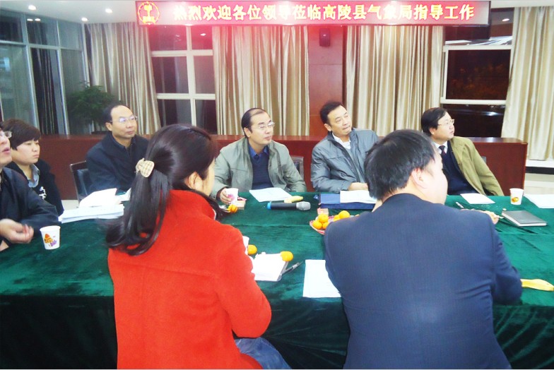 2012年11月28日上午,西安市气象局庞亚峰副局长,陕西省气象局观测处李社宏处长,陕西省气象局减灾处段昌辉处长等领导一行,莅临高陵县气象局参观指导工作。